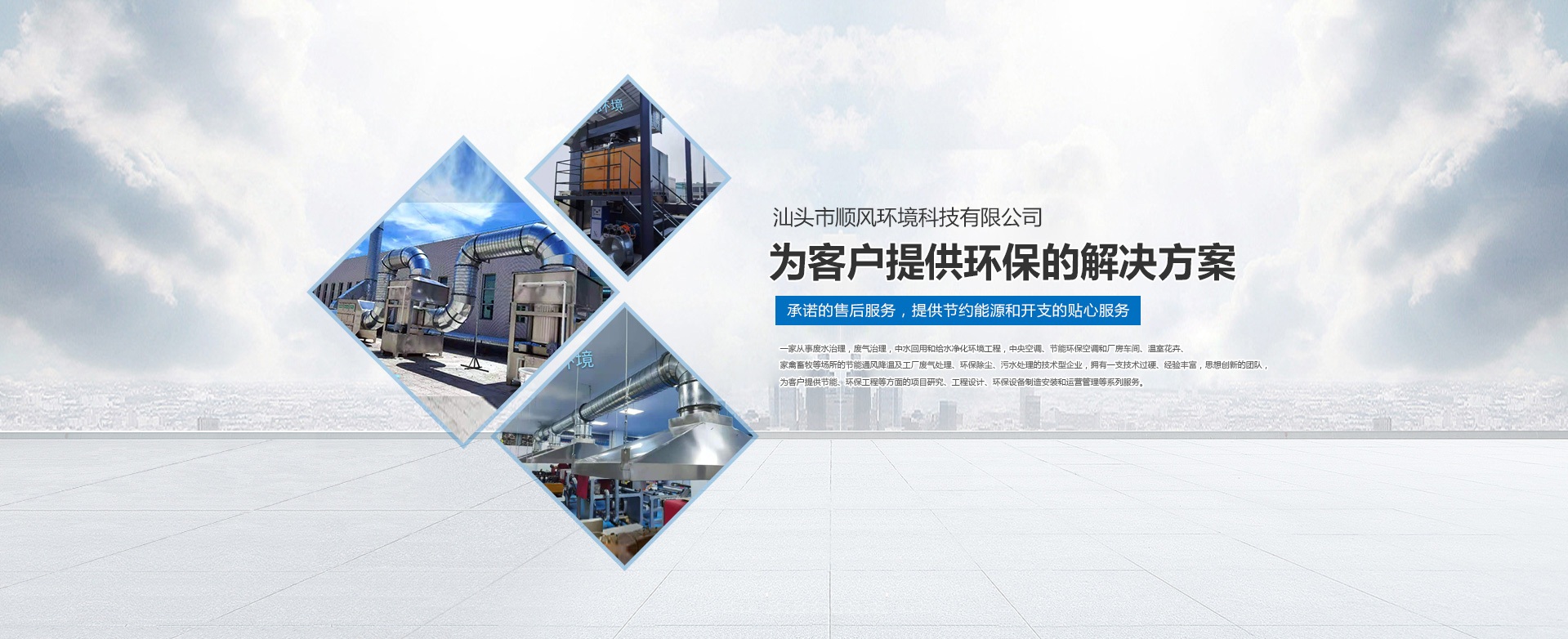 汕頭市順風環(huán)境科技有限公司,是一家專注從事廢水治理,廢氣治理,中水回用和給水凈化環(huán)境工程,中央空調(diào)、節(jié)能環(huán)??照{(diào)和廠房車間、溫室花卉、家禽畜牧等場所的節(jié)能通風降溫及工廠廢氣處理、環(huán)保除塵、污水處理的技術(shù)型企業(yè),擁有一支技術(shù)過硬、經(jīng)驗豐富,思想創(chuàng)新的團隊,為客戶提供節(jié)能、環(huán)保工程等方面的項目研究、工程設(shè)計、環(huán)保設(shè)備制造安裝和運營管理等系列服務(wù)。 多年來,公司堅持 “ 誠信于人,業(yè)精于勤” 的宗旨,憑借豐富的工作經(jīng)驗及雄厚的技術(shù)實力為多家大型公司、工廠、養(yǎng)殖、超市等大型綜合場所進行節(jié)能通風降溫及廢氣處理、污水處理等工程設(shè)計、安裝、維修、年度保養(yǎng),得到了顧客的一致好評并長期合作。